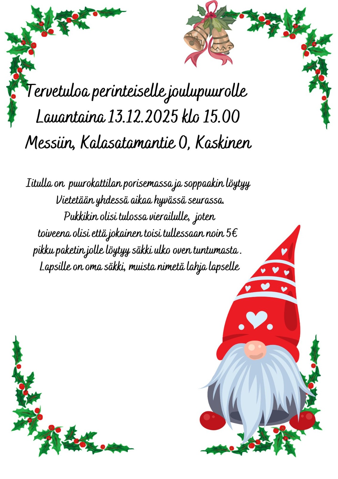 Tervetuloa joulupuurolle 13.12.2025 klo 15:00